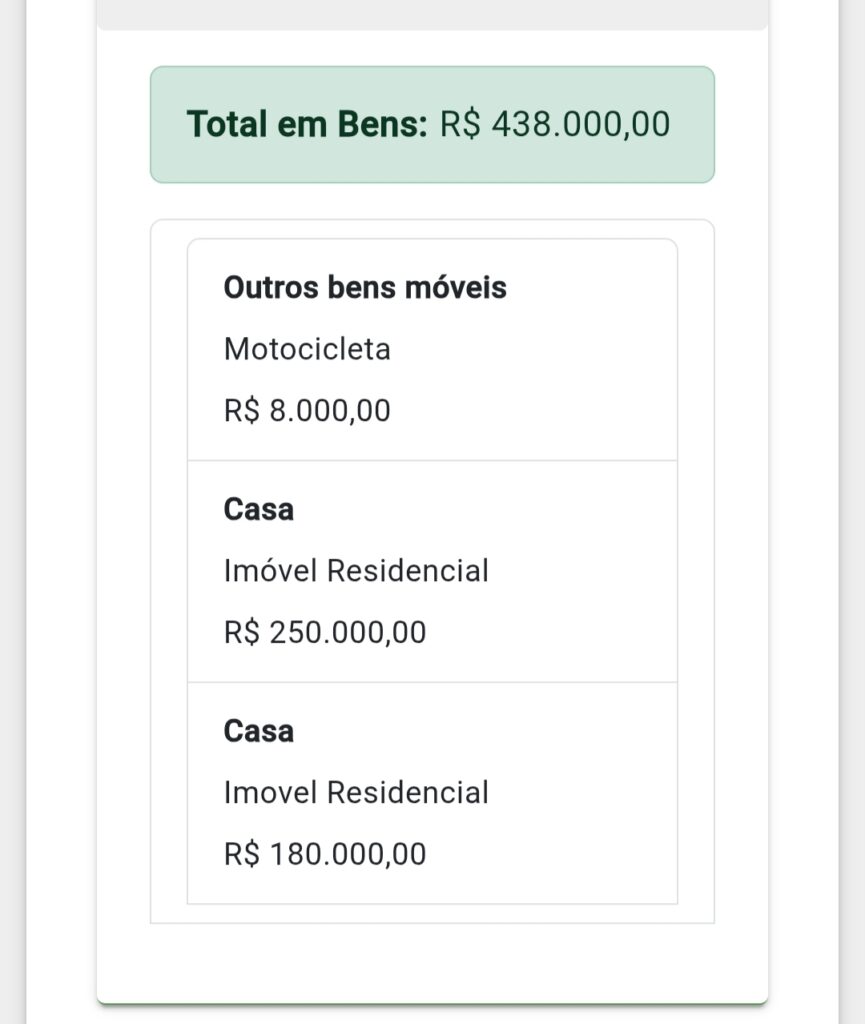 Para termos uma ideia, nas eleições de 2016, Nilton foi candidato a vereador na cidade da Baixada. Na época, ele declarou à Justiça Eleitoral possuir um patrimônio de R$ 103.000,00 (cento e três mil reais): uma casa na Rua Teodomiro Penha, no valor de R$ 60.000,00, um veículo Palio no valor de R$ 23.000,00 e um ponto comercial no valor de R$ 20.000,00. Já em 2024, Nilton declarou à mesma Justiça Eleitoral um patrimônio no valor de R$ 438.000,00 (quatrocentos e trinta e oito mil reais).